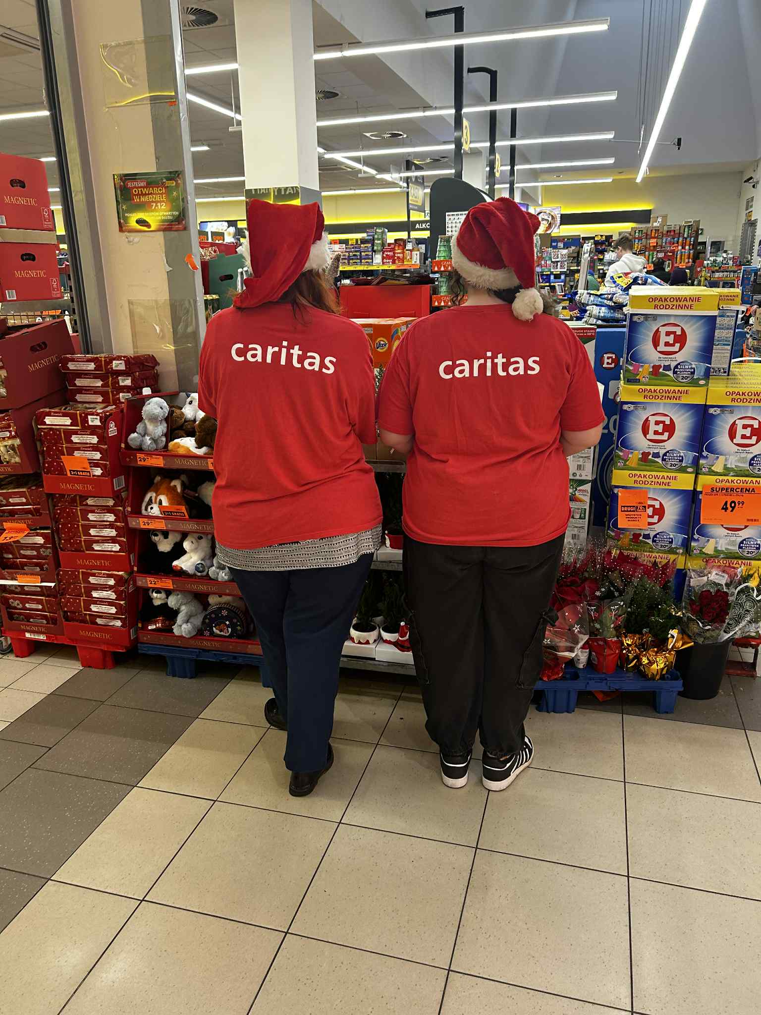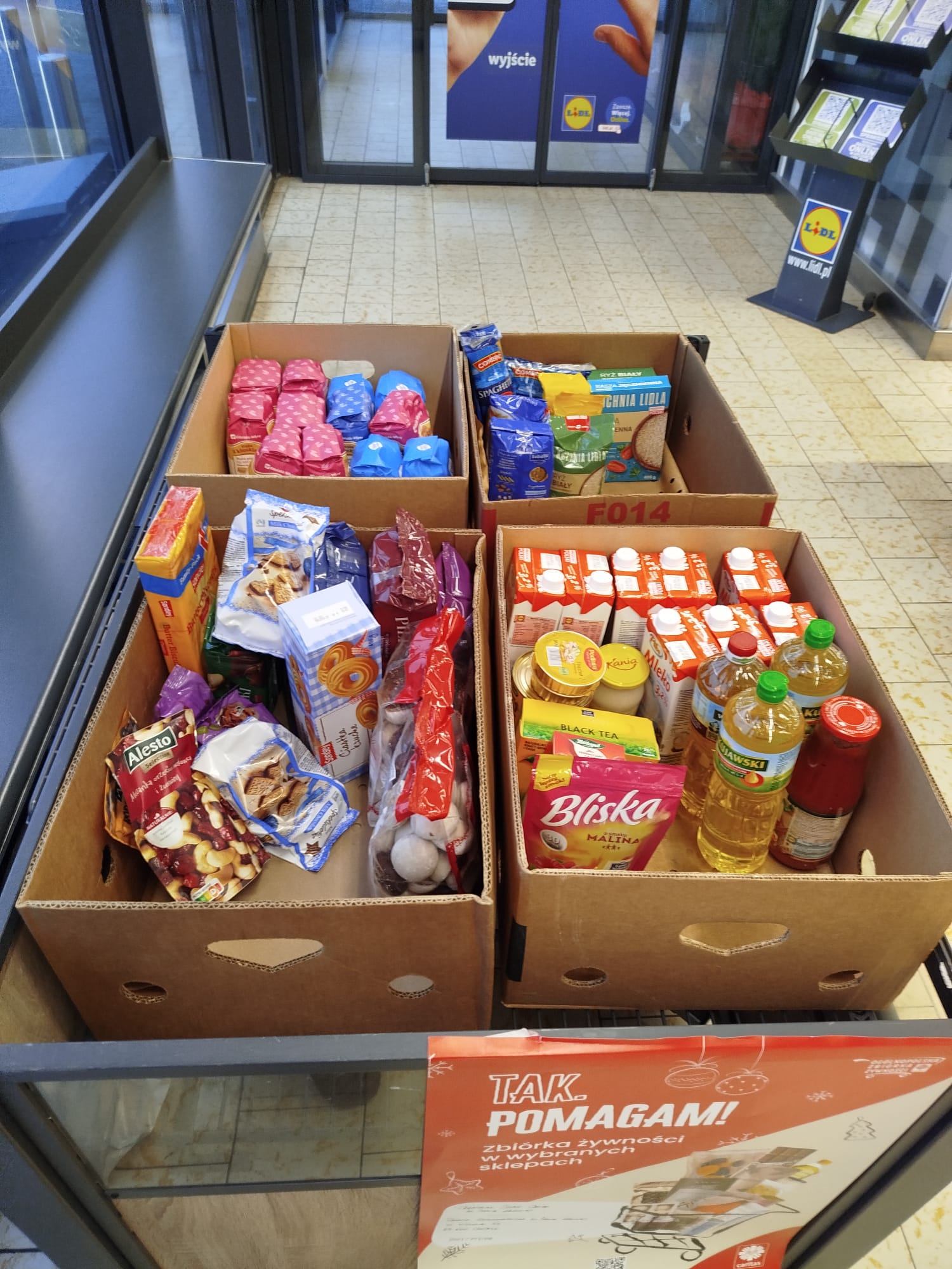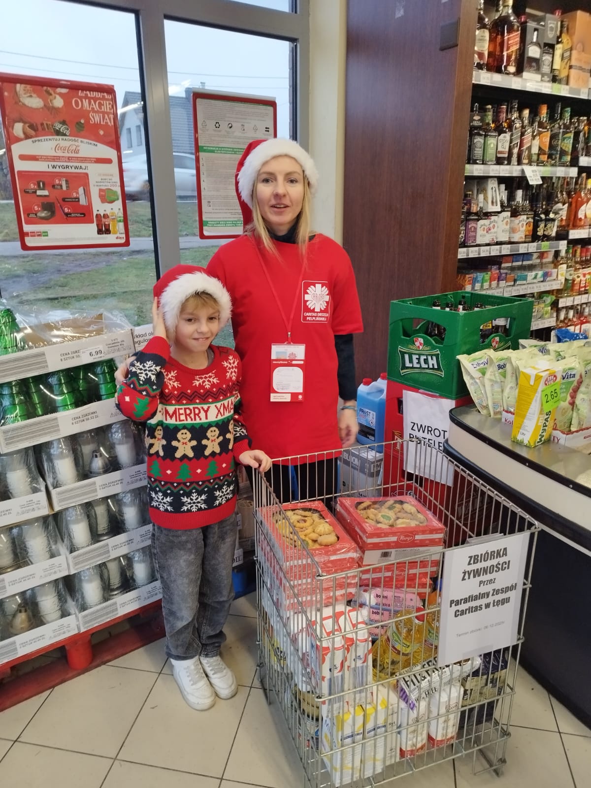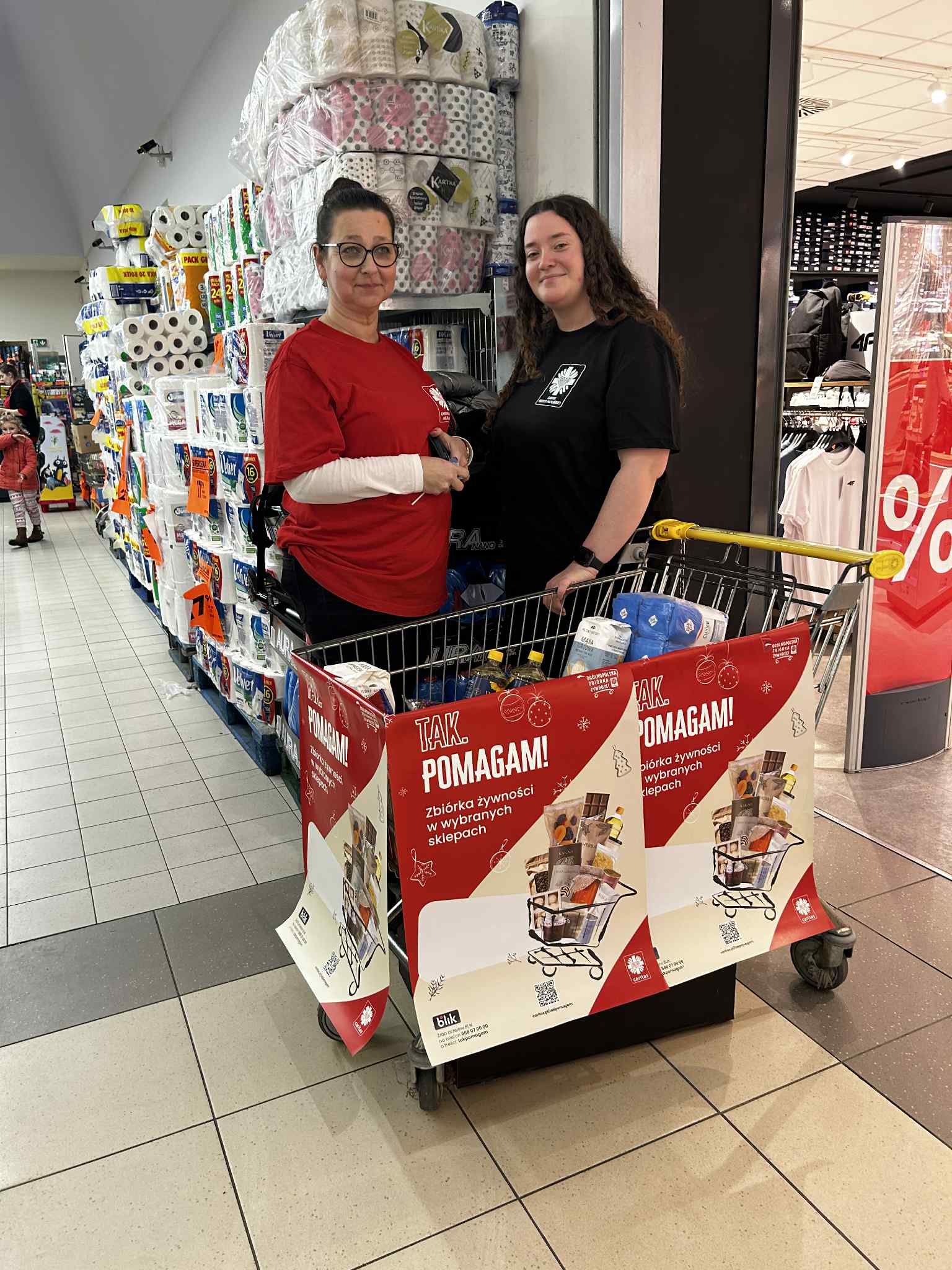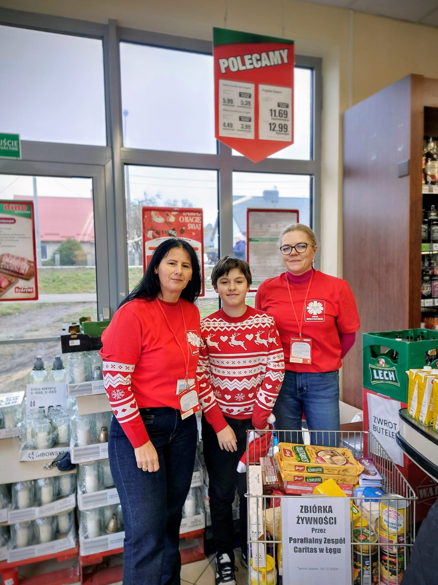 W dniach 5–6 grudnia 2025 r. odbyła się kolejna edycja ogólnopolskiej zbiórki żywności „Tak! Pomagam!”, prowadzona w 70 sklepach na terenie całej Diecezji Pelplińskiej. Celem akcji było pozyskanie żywności dla osób najbardziej potrzebujących, aby mogły godnie przeżyć nadchodzące święta Bożego Narodzenia. Sercem i główną siłą zbiórki byli wolontariusze: młodzież działająca w Szkolnych Kołach Caritas, a także dorośli wolontariusze z Parafialnych Zespołów Caritas i parafii. Dzięki ich otwartości, życzliwości i gotowości do służby możliwe było przeprowadzenie akcji na tak dużą skalę. Istotną rolę odegrali również koordynatorzy, którzy odpowiadali za przebieg zbiórek w poszczególnych miejscowościach, organizację dyżurów, współpracę ze sklepami oraz kwestie logistyczne. Składamy im serdeczne podziękowania za wysiłek, czas i odpowiedzialność, które włożyli w realizację tego zadania.